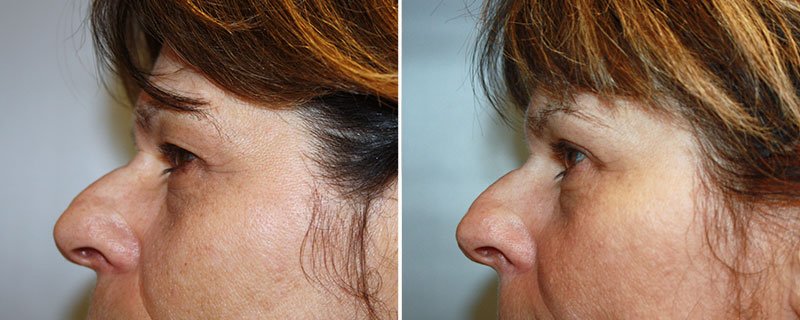 This 53-year-old patient was bothered by excessive skin of the upper eyelids causing her to have a tired appearance. The patient did have an excessive amount of skin at the hood of the upper eyelids and Dr. Reedy was able to remove some of that skin to give the patient a rejuvenated fresh look that otherwise would have been unobtainable with the use of corrective creams and serums.